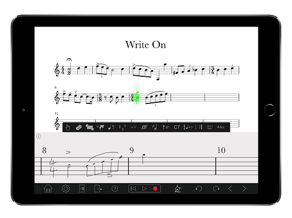 使用iOS专用的Notion,您可以选择简单易用的音符键入方法进行编写。通过屏幕上的指板,也就是一个MIDI键盘,选择并触摸音符,然后键入您自己的手写或任何组合。