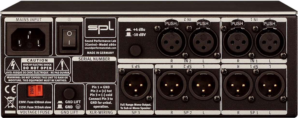 2Control的理念是基于双通道的操作:连接两个音源、设置两个立体声音箱和两个耳机。三个音箱输入中的每一个(两个立体声设置和一个单声道音箱)是由各自的平衡阶段来拒绝信号降解互相影响的。每个耳机输出都有一个独立的前置放大器,无需与另一方输出配合就可以完成对两个耳机的单独操作。